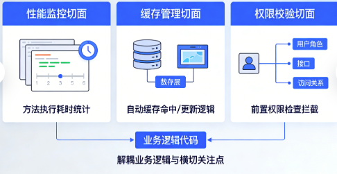 2. 开闭原则:新增功能不修改原有代码,通过切面扩展